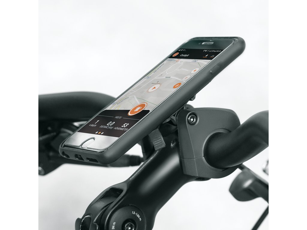 Nastavitelný držák chytrého telefonu pro všechna běžná řídítka, velmi pevný a bezpečný i v extrémně drsném terénu. Díky otočení můžete svůj smartphone připevnit vodorovně či svisle díky širokému bajonetovému uchycení a zároveň jej můžete nastavit do požadované polohy nastavením úhlu.