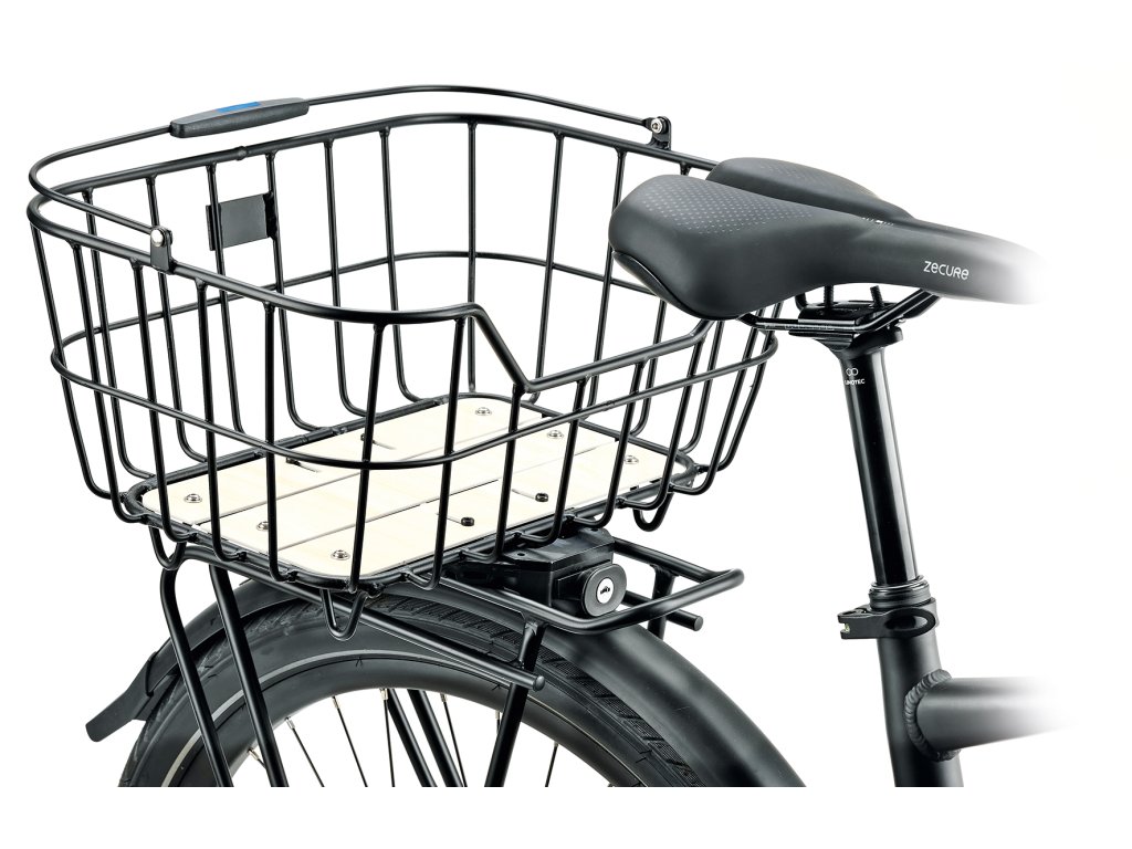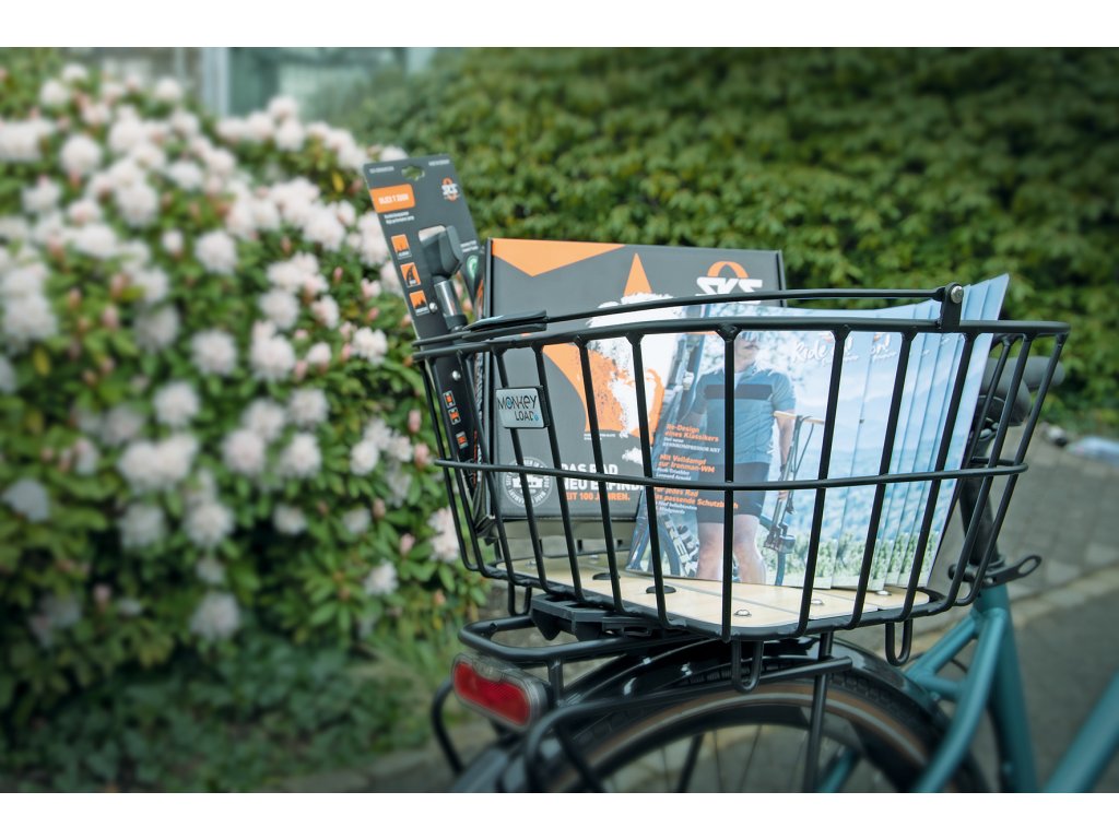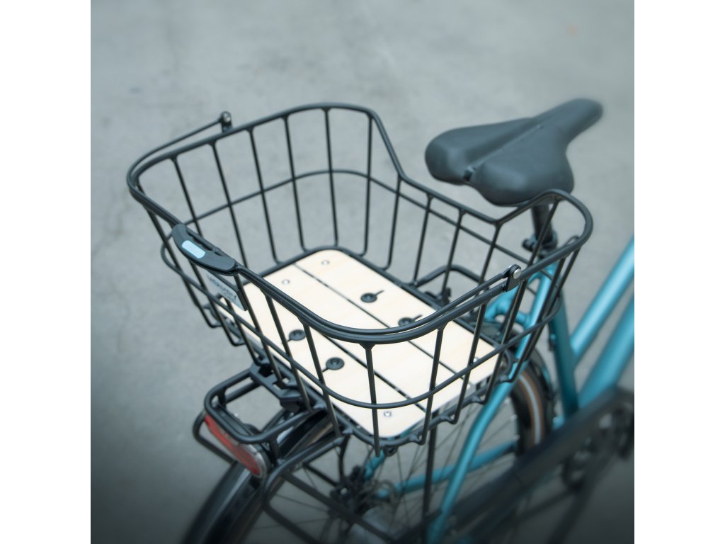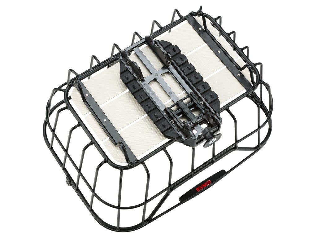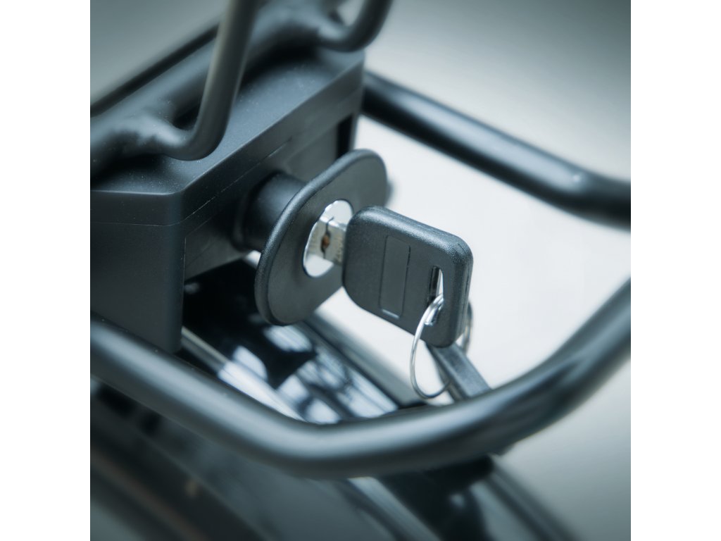 HELSINGBORG MTL BASKET je zajištěn adaptérovou deskou umístěnou na spodní straně. Během několika sekund se košík zacvakne na všechny nosiče zavazadel se systémem MonkeyLoad-T. Tlumící vrstva pod deskou zajišťuje, že koš na kolo bezpečně sedí na nosiči zavazadel a může být také zajištěn zámkem. Zajišťovací mechanismus se uvolní vytažením dopředu. Koš pak lze snadno přepravovat pomocí sklopné rukojeti.