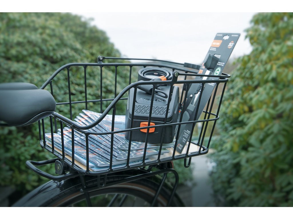 HELSINGBORG MTL BASKET je zajištěn adaptérovou deskou umístěnou na spodní straně. Během několika sekund se košík zacvakne na všechny nosiče zavazadel se systémem MonkeyLoad-T. Tlumící vrstva pod deskou zajišťuje, že koš na kolo bezpečně sedí na nosiči zavazadel a může být také zajištěn zámkem. Zajišťovací mechanismus se uvolní vytažením dopředu. Koš pak lze snadno přepravovat pomocí sklopné rukojeti.
