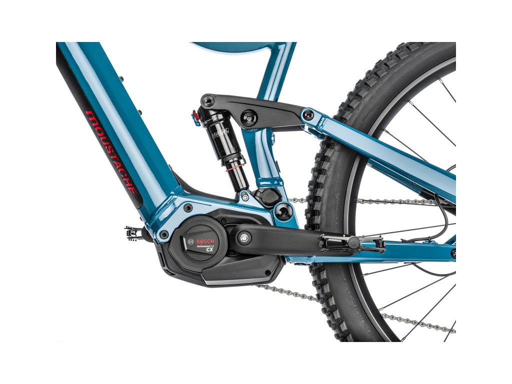 Model MOUSTACHE Samedi WIDE 3 je celoodpružené MTB elektrokolo s hliníkovým rámem, odpružením 130 mm vpředu (Suntour XCR 34) a 120 mm vzadu (Moustache Magic Grip Control). Pohání ho motor Bosch Performance Line CX s točivým momentem až 85 Nm a baterie Bosch PowerTube 625 Wh, která poskytuje dlouhý dojezd. Model je vybaven hydraulickými kotoučovými brzdami Shimano a 11rychlostním řazením Shimano Deore. Díky širokým 27,5" plášťům Maxxis Rekon je ideální pro různé terénní podmínky. Displej Bosch Intuvia 100 s LED dálkovým ovládáním nabízí snadno čitelné informace a umožňuje připojení k aplikaci Bosch eBike Flow.