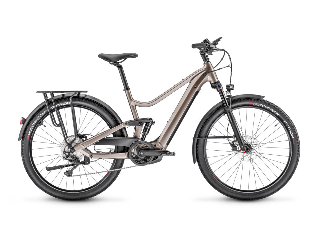 MOUSTACHE Samedi 27 Xroad FS 3 je univerzální elektrokolo, které spojuje dynamiku městského kola s pohodlím celoodpruženého rámu, a je tak ideální volbou pro jízdu jak po městě, tak v terénu. Hliníkový rám s předním a zadním odpružením o 130mm a 120mm zdvihu, doplněný tlumičem Moustache Magic Grip Control a vidlicí SR Suntour XCR 32 ATB, poskytuje hladkou a pohodlnou jízdu. Elektrokolo pohání výkonný motor Bosch Performance Line CX s točivým momentem 85 Nm, který ve spojení s integrovanou baterií Bosch PowerTube o kapacitě 625 Wh nabízí neuvěřitelný dojezd.