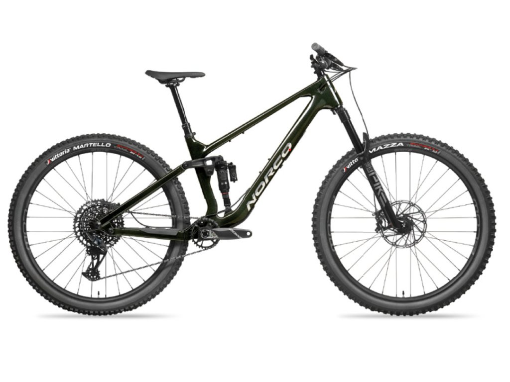 Celoodpružený trailový stroj NORCO Fluid C2 je navržený pro pokročilé a ambiciózní jezdce. Nabízí skvělou kombinaci výkonu, odolnosti a přesného ovládání. Hlavní trojúhelník z karbonových vláken a hliníkové vzpěry zaručují nízkou hmotnost a vysokou odolnost. Přední odpružení zajišťuje vidlice RockShox Pike Select+ se 140 mm zdvihu a 130 mm zadního zdvihu tlumič RockShox Super Deluxe Ultimate. Geometrie Ride Aligned™ poskytuje přizpůsobení specifické velikosti rámu pro dokonalou rovnováhu a ovladatelnost na trailu. Pohon SRAM GX Eagle s 12 rychlostmi a širokým rozsahem převodů 10-52T usnadňuje šlapání v náročném terénu, hydraulické kotoučové brzdy SRAM G2 RS s 200mm předním a 180mm zadním kotoučem vynikající brzdný výkon. Samozřejmostí je nastavitelná teleskopická sedlovka SDG Tellis VS s délkou 150 mm (S), 170 mm (M) a 200 mm (L, XL), vnitřní vedení kabeláže a integrovaná ochrana rámu.