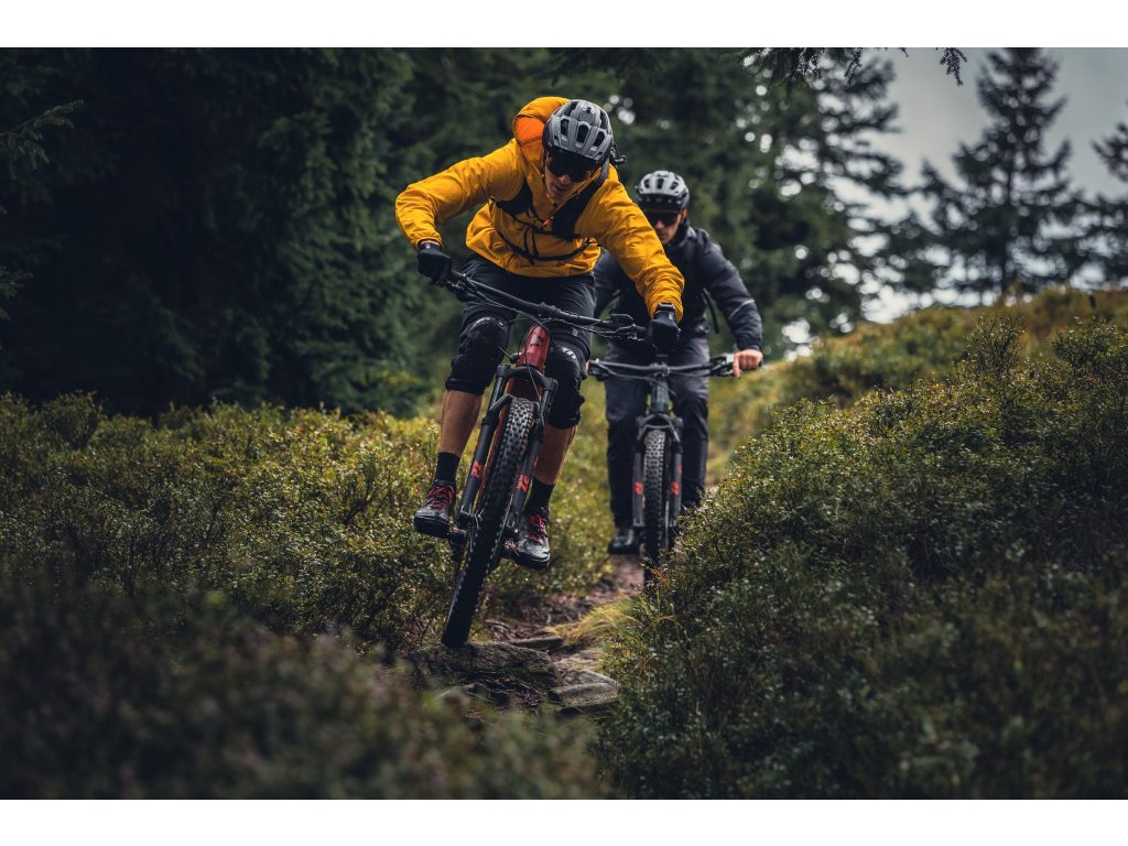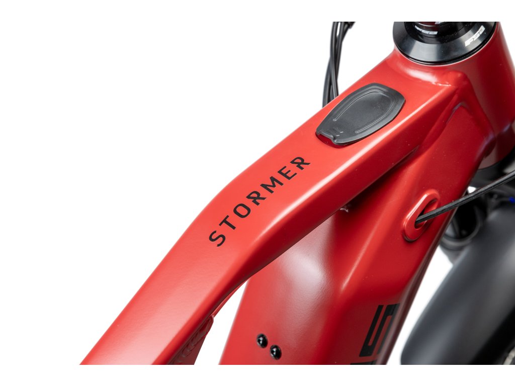 Stormer FS 2 je nejdostupnějším modelem celoodpružených e-biků Pells. Moderní agresivní geometrie s hlavovým úhlem 64,5° a prodlouženým předním rámovým trojúhelníkem, umožňuje perfektní rozložení váhy jezdce a jistotu v rychlých a těžkých sjezdech. Díky konstrukci rámu s pootočeným motorem o 45° bylo možné umístit baterii před motor a dostat tak těžiště kola ještě níže. Baterie se pak do rámu vkládá přes malý otvor ve spodní části, což oproti standardnímu řešení poskytuje přednímu trojúhelníku výrazně vyšší tuhost. O maximálně citlivé dávkování přípomoci se stará nejnovější pohonná jednotka Bosch Performance CX s maximem točivého momentu 85 Nm. Maximální dojezd pak zajistí integrovaná baterie s kapacitou 750 Wh. Přehled o všech jízdních datech, nebo třeba i spárování mobilního telefonu, je možné kontrolovat prostřednictvím barevného displeje Kiox 300. Odpružení v podobě vzduchové vidlice SR Suntour Zeron 35 a tlumiče Rockshox Deluxe Select nebo spolehlivý a odolný pohon Shimano Deore 1x12 či standardní teleskopická sedlovka znamenají jediné: Stormer FS 2 nedělá kompromisy ve výkonu.