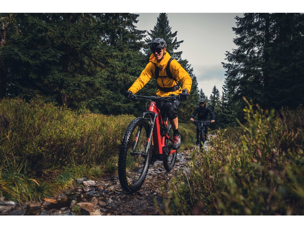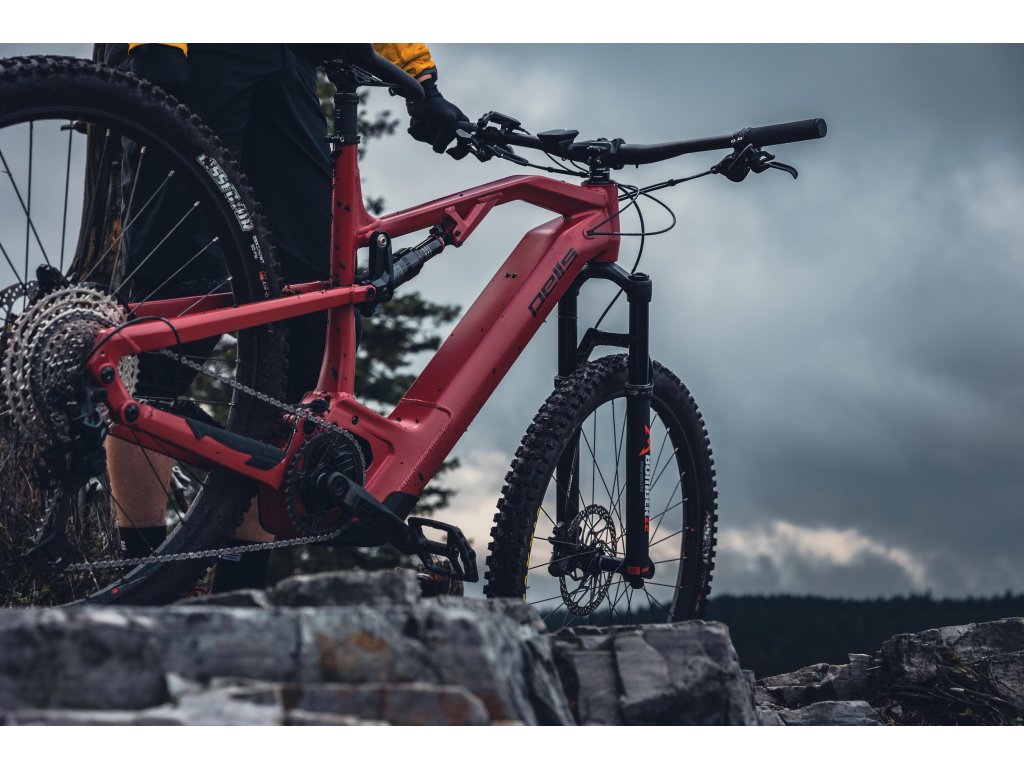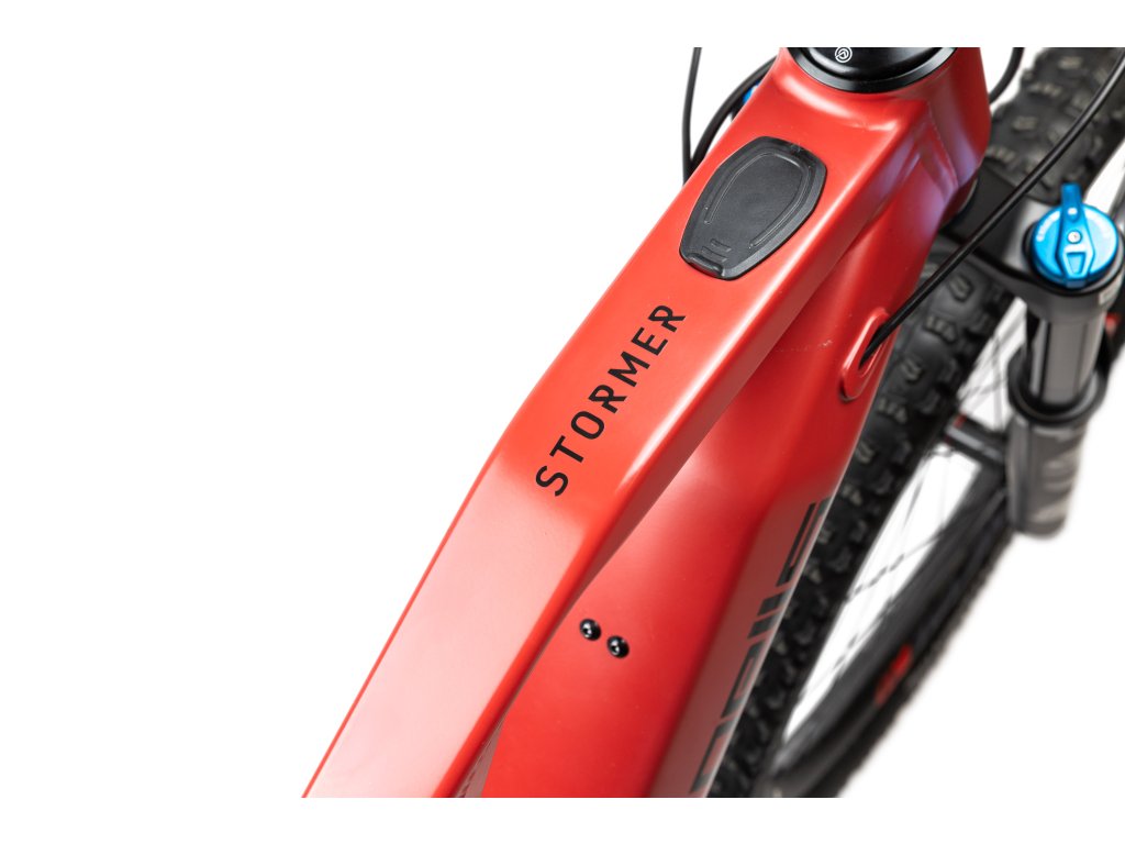 Stormer FS Ultimate poskytuje maximální výkon na všech druzích trailů. Moderní agresivní geometrie s hlavovým úhlem 64,5° a prodlouženým předním rámovým trojúhelníkem umožňuje perfektní rozložení váhy jezdce a jistotu v rychlých a těžkých sjezdech. Díky konstrukci rámu s pootočeným motorem o 45°, bylo možné umístit baterii před motor a dostat tak těžiště kola ještě níže. Baterie se pak do rámu vkládá přes malý otvor ve spodní části, což oproti standardnímu řešení poskytuje přednímu trojúhelníku výrazně vyšší tuhost. O maximálně citlivé dávkování přípomoci se stará nejnovější pohonná jednotka Bosch Performance CX s maximem točivého momentu 85 Nm. Dlouhotrvající zábavu pak zajistí integrovaná baterie s kapacitou 750 Wh. Přehled o všech jízdních datech, nebo třeba i spárování mobilního telefonu, je možné kontrolovat prostřednictvím barevného displeje Kiox 300. Jistotu a komfort dodává biku kombinace vidlice Fox 34 Peformance se zdvihem 140 mm a tlumiče Rockshox Deluxe Select+ se dvěma polohami komprese. Změnu převodů má na starost bezdrátové řazení Sram GX AXS, integrované do systému ebiku tak, že přehazovačka je napájena z hlavní baterie elektrokola. Specifikaci doplňují odolné, e-bike specifické výplety Fulcrum E-Metal 300, obuté do přilnavých plášťů Continental Trail King.