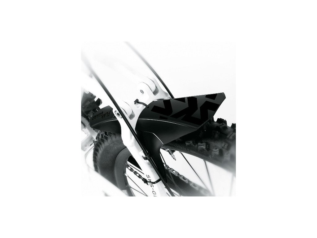 Jednoduchý plastový blatník do přední vidlice i do zadní stavby. Vyrobený z měkkého plastového materiálu, díky čemuž je univerzální pro 26, 27.5 i 29 palcová kola a kompatibilní s většinou vidlic.
