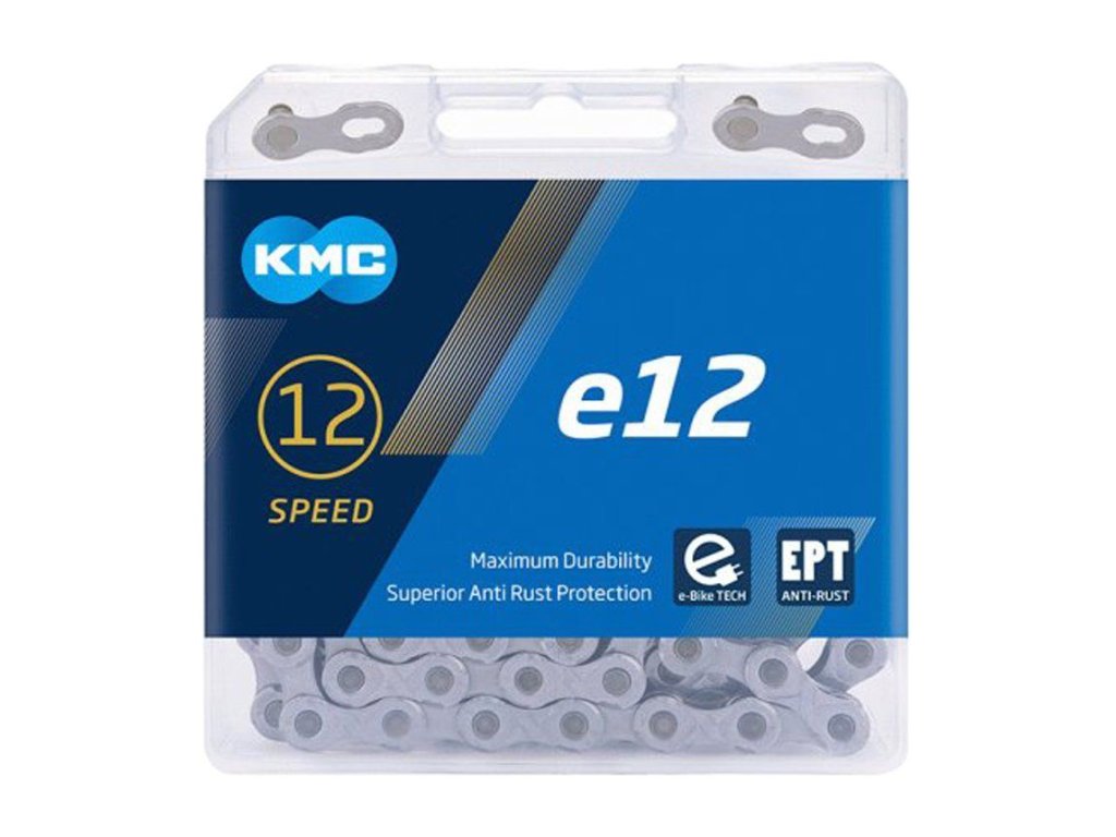 KMC e12 EPT je 12rychlostní řetěz speciálně navržen pro elektrokola se středovými motory, kompatibilní s řazením Shimano i Sram.