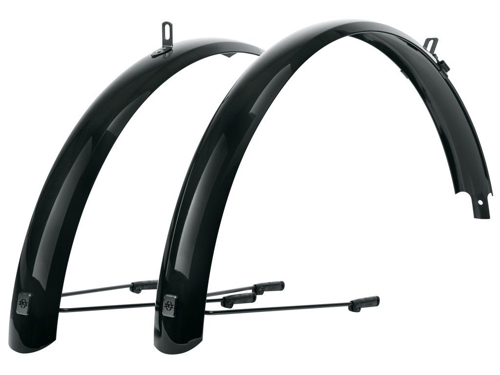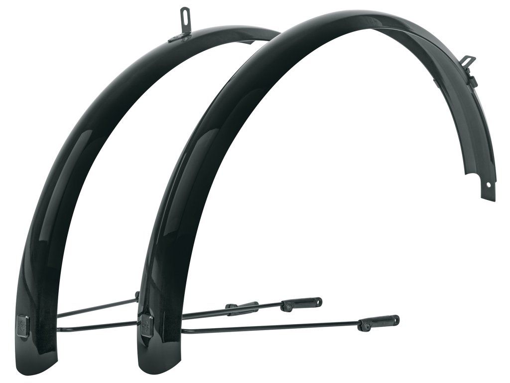 SKS Bluemels Basic je sada blatníků vyrobená z robustní sendvičové konstrukce v kombinaci hliník/plast. Jeho lesklý design umí zaujmout, spolehlivě chrání před nečistotami a stříkající vodou. Díky flexibilní sendvičové konstrukci, ve které jsou ultrajemné hliníkové pásy zapuštěny do plastového povlaku, jsou blatníky extrémně robustní, tuhé a odolné proti korozi. Slouží jako vynikající ochrana díky montáži těsně u pláště. Ať už na polních cestách nebo lesních cestách, blatníky BLUEMELS Basic nabízejí vynikající všestrannou ochranu. Bezpečnostní systém ESC odpojí vzpěry v případě zachycení větví mezi paprsky kola, aby se kolo nemohlo zaseknout.